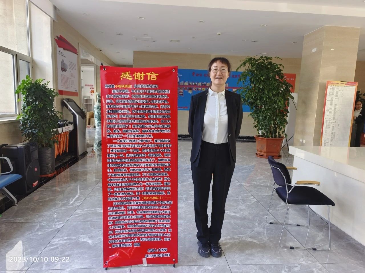 發(fā)表日期:2023-10-11 來源:吉林小棉襖家政集團股份有限公司 發(fā)布時間:2023/10/23 8:49:022023年10月10日上午,客戶卞女士的兒媳婦帶著錦旗和感謝信來到了小棉襖集團,對我們的家政服務(wù)給予了高度的贊揚,錦旗上“專業(yè)敬業(yè)、情滿人間”八個大字充分表達了對小棉襖集團護工陳虹霞精心照顧老人的感激之情。