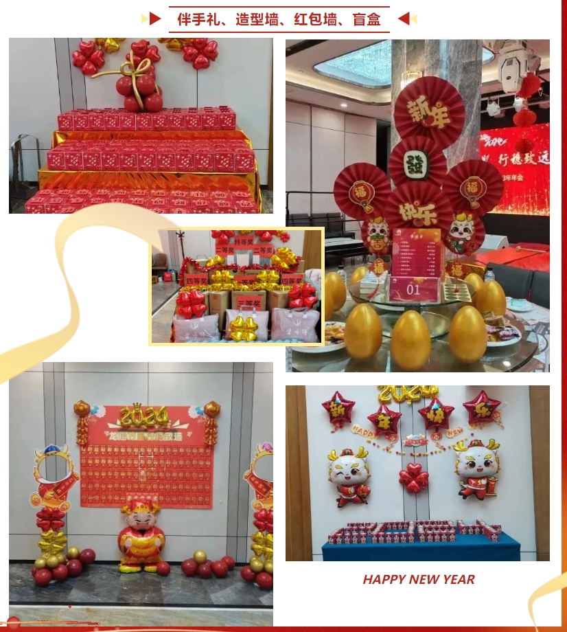 會場布置更是面面俱到:簽到處簽到并領(lǐng)取伴手禮;龍年大吉定點造型處隨意擺拍,留下美好的瞬間;紅包墻備有現(xiàn)金及刮刮樂,增加小驚喜;印有每名員工姓名的訂制版旺仔牛奶,貼心而又用心;新年盲盒區(qū)每個禮物盲盒都藏有不同的驚喜;還有豐厚的大獎,會序分工明確,每一環(huán)節(jié)都有禮儀小姐引導(dǎo),全都安排的明明白白的。